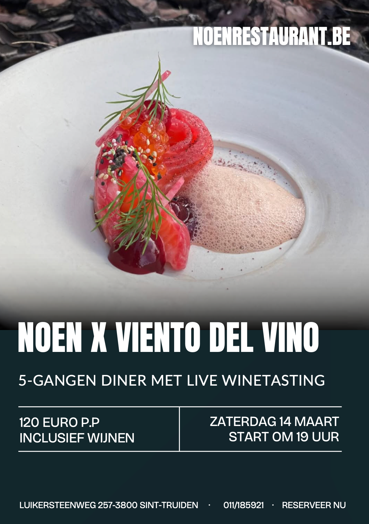 Op zaterdag 14 maart 2026 om 19u doen we ’s avonds de lichten aan bij NOEN voor een gezellige en smaakvolle avond.